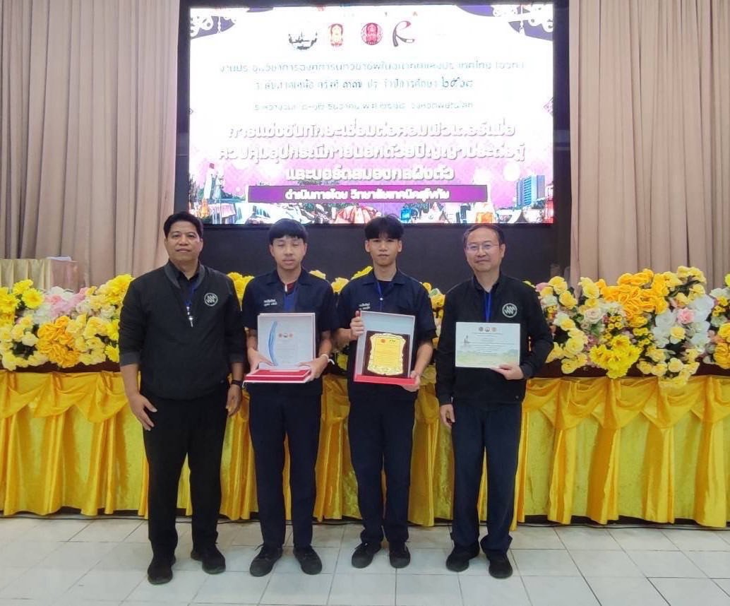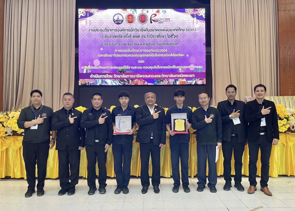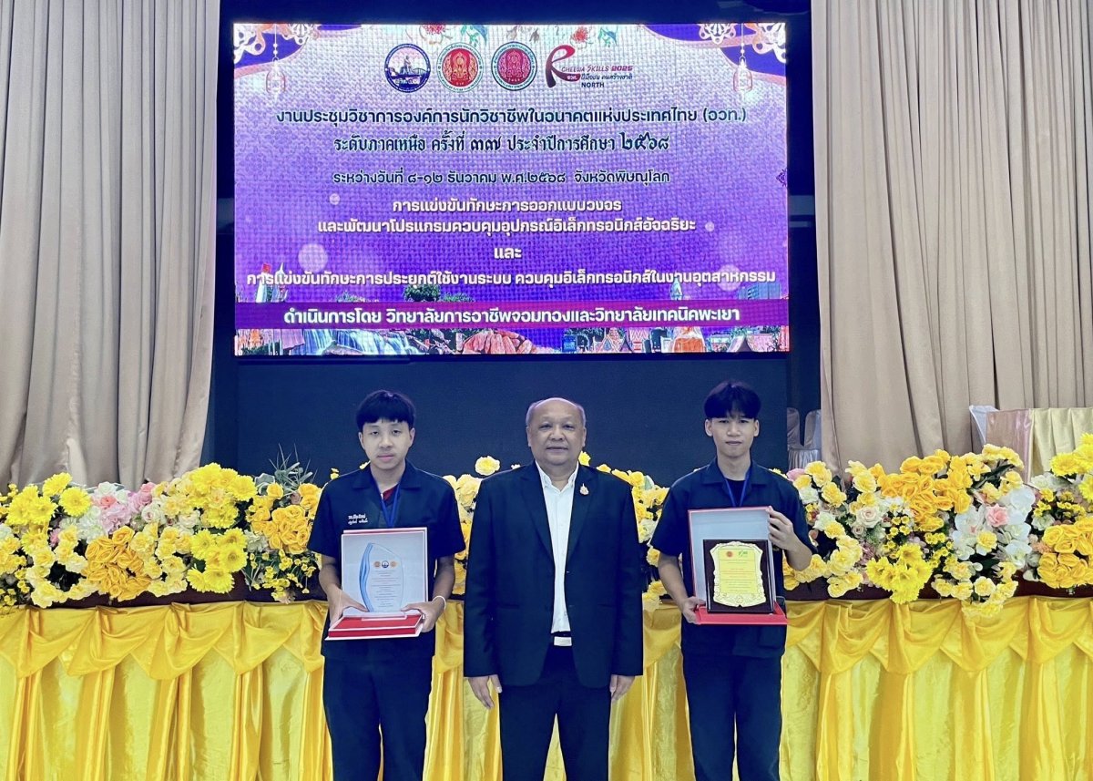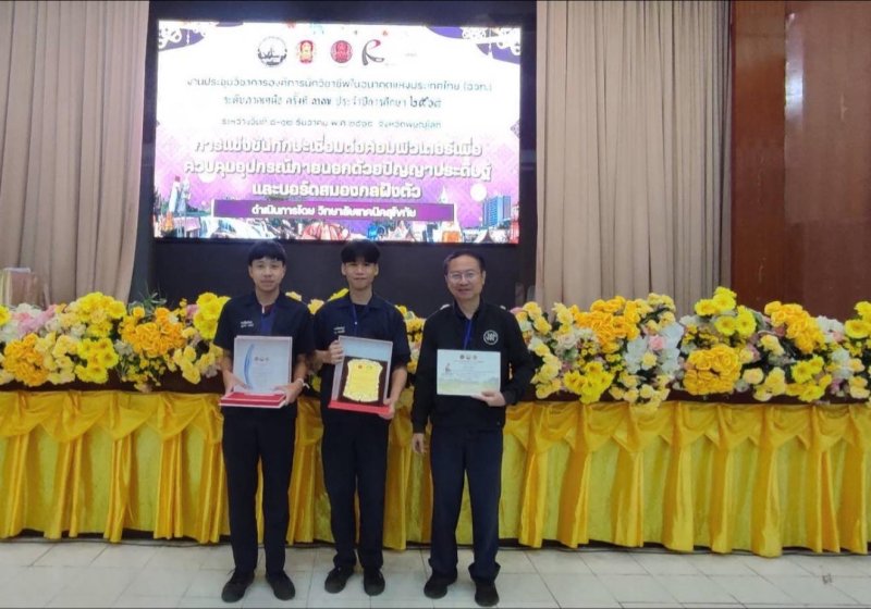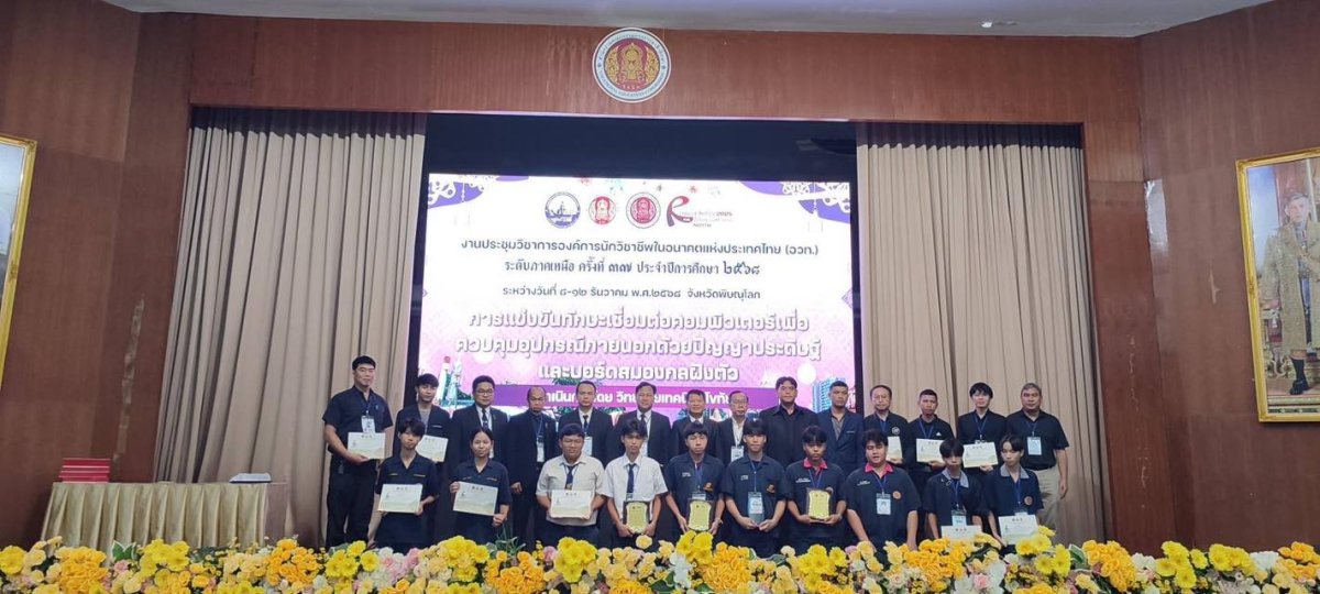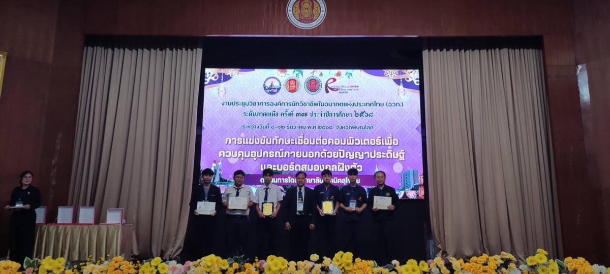 รางวัลชนะเลิศทักษะเชื่อมต่อคอมพิวเตอร์เพื่อควบคุมอุปกรณ์ภายนอกด้วยปัญญาประดิษฐ์และบอร์ดสมองกลฝังตัว (ระดับ ปวช. ประเภททีม) ในการแข่งขันทักษะวิชาชีพและทักษะพื้นฐาน ระดับภาคเหนือ ครั้งที่ 37 ประจำปีการศึกษา 2568 ณ วิทยาลัยเทคนิคพิษณุโลก