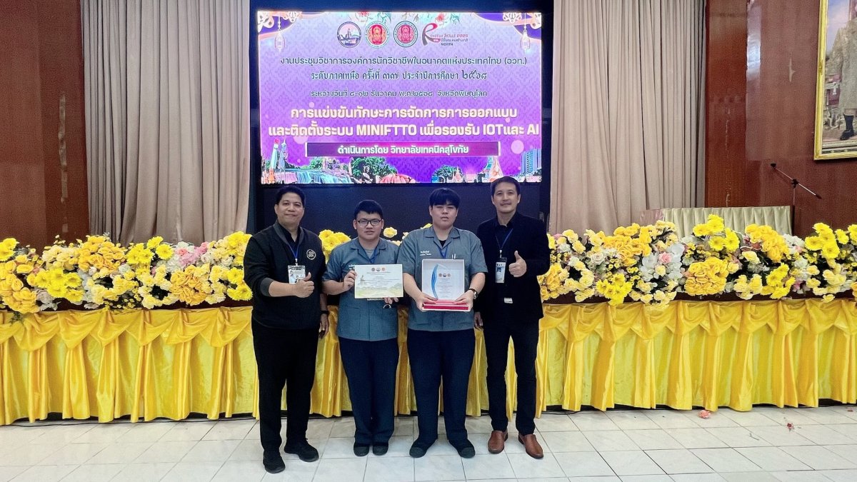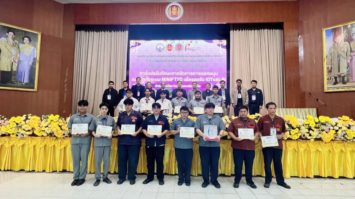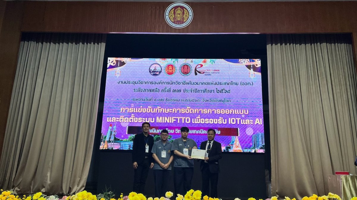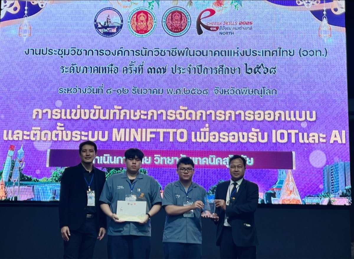 รางวัลชนะเลิศ มาตรฐานเหรียญทอง ทักษะการจัดการการออกแบบและติดตั้งระบบ MiniFTTO เพื่อรองรับ IoT และ AI ระดับ ปวส. ประเภท ทีม